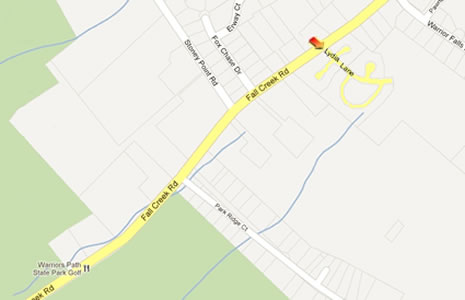 From I-81 take exit 59 Fort Henry Drive toward Colonial Heights. Turn right at Hemlock Rd. toward Warriors Path State Park; slight left at the park onto Fall Creek Rd. go past Warriors Path Golf Course appox. 0.6 mi and Chase Meadows is on the right.